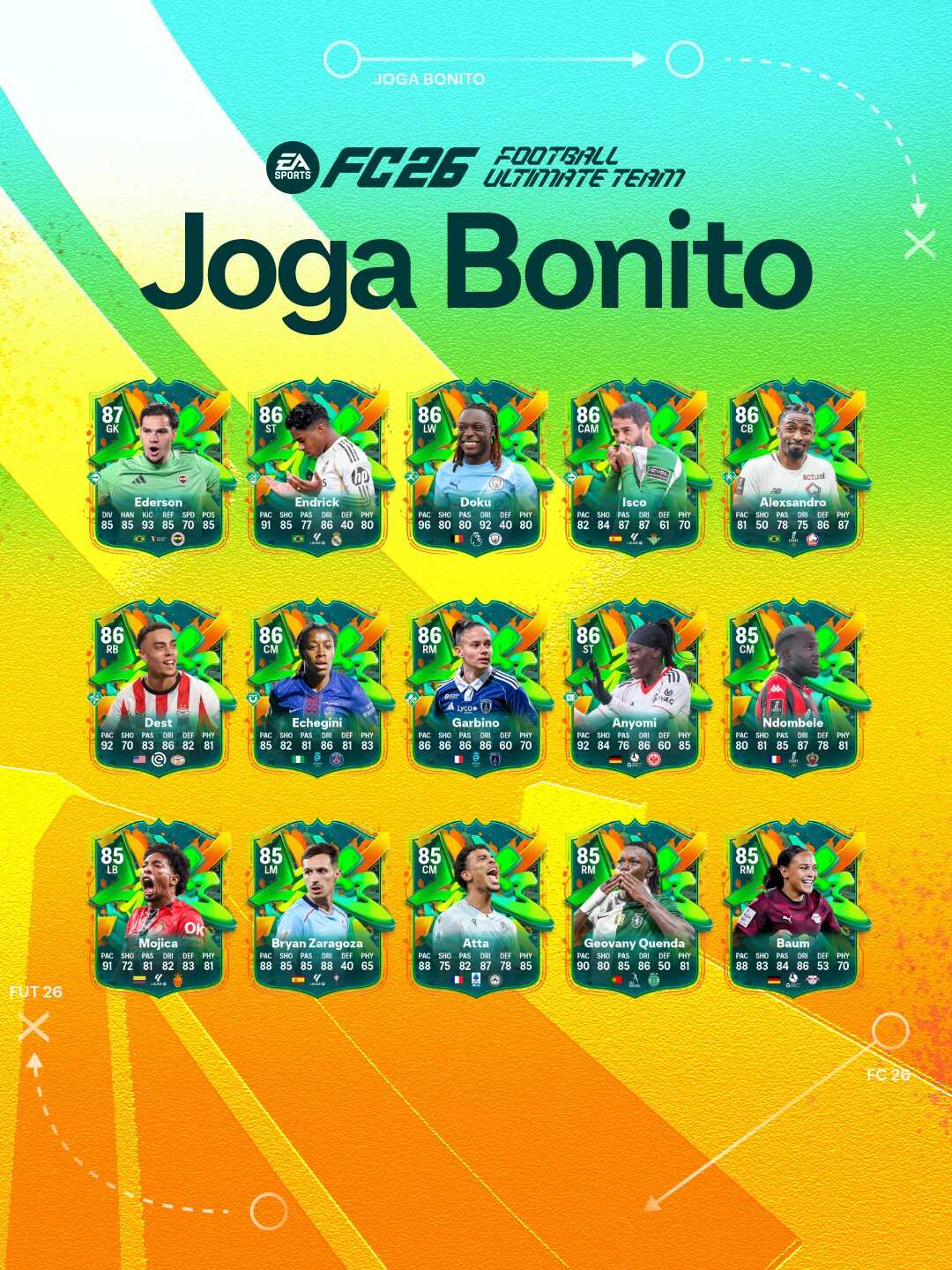 Desde el Viernes 5 de Diciembre, los jugadores del equipo del Joga Bonito, los cuales tendrán mejoras de 5 estrellas de habilidades y otras mejoras varias, estarán disponibles en los sobres de la tienda. Algunos de los mejores jugadores/as son Vitinha, Bonmatí y Palmer.